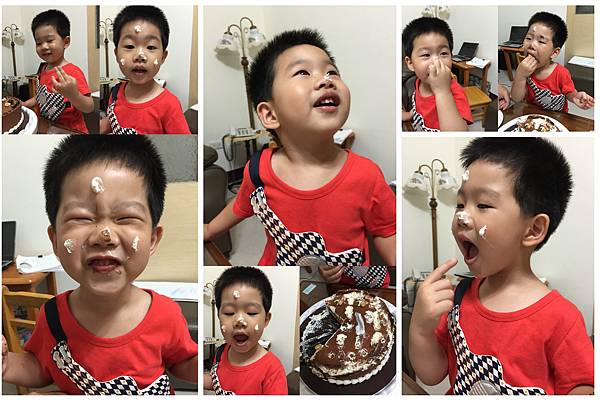 一個好好的蛋糕就在阿弟仔的蹂躪下.....呈現了慘不忍睹的狀態